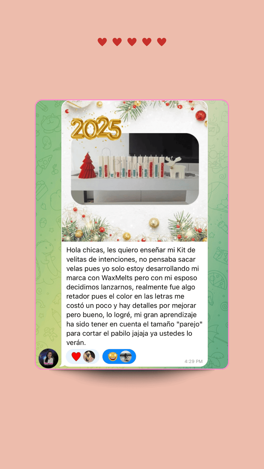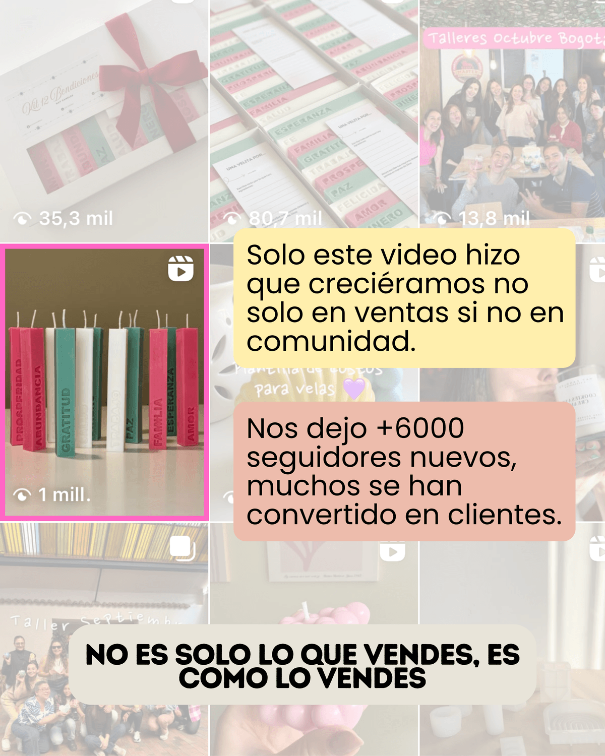 Después de 7 años con nuestra marca, reunimos nuestra experiencia en elaboración de velas y marketing digital para enseñarte a convertir tus redes sociales en una marca que genere confianza y venda mes a mes, con contenido y pauta publicitaria.