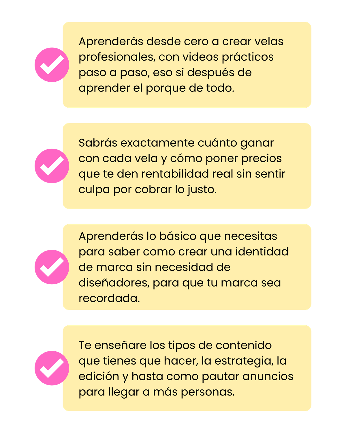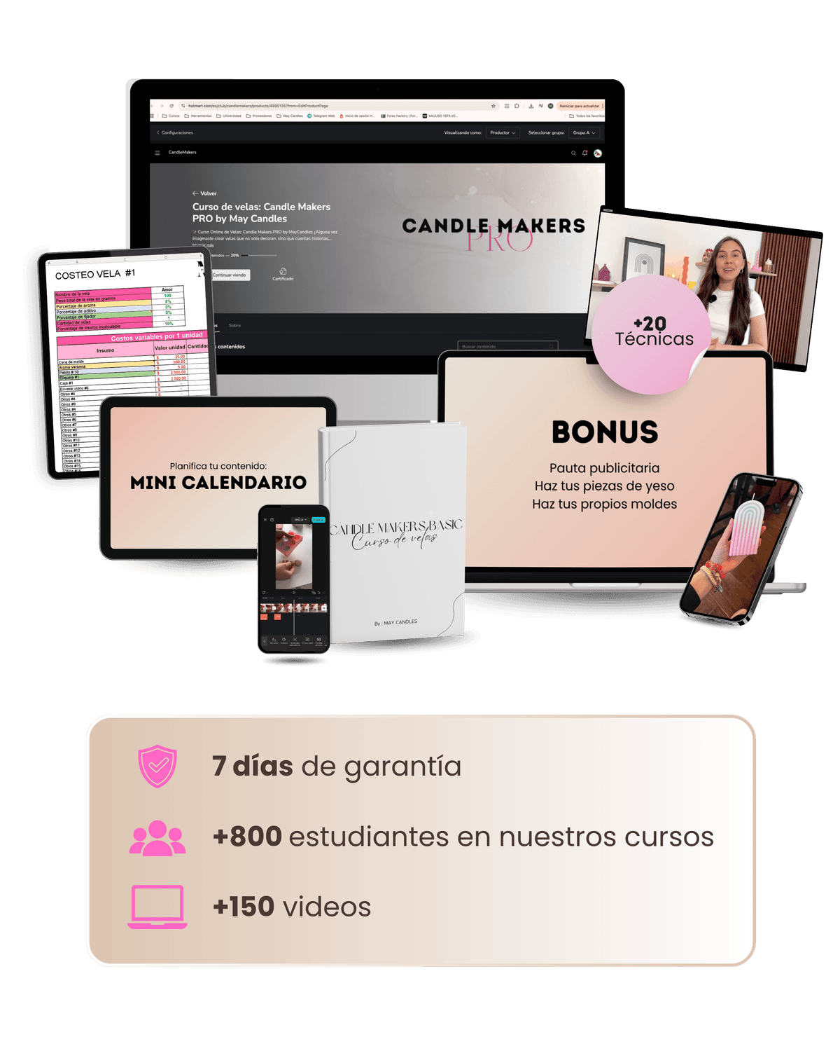 Porque Candle Makers Pro no es solo un curso para aprender a hacer velas… es la guía que te lleva a construir un negocio real, desde tu casa, con tus tiempos y con una estrategia clara.