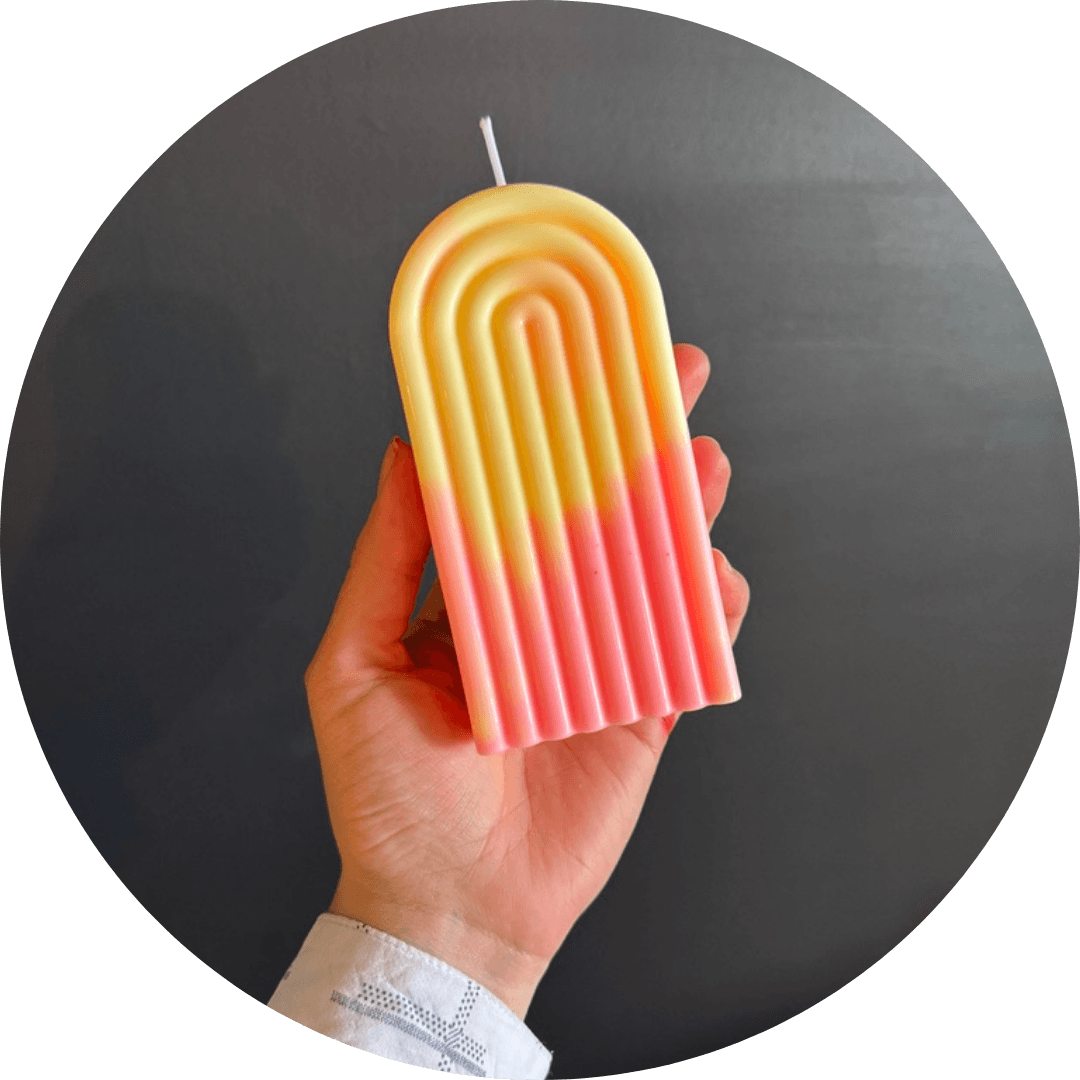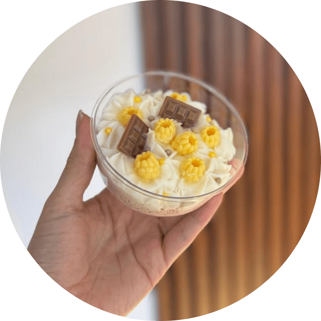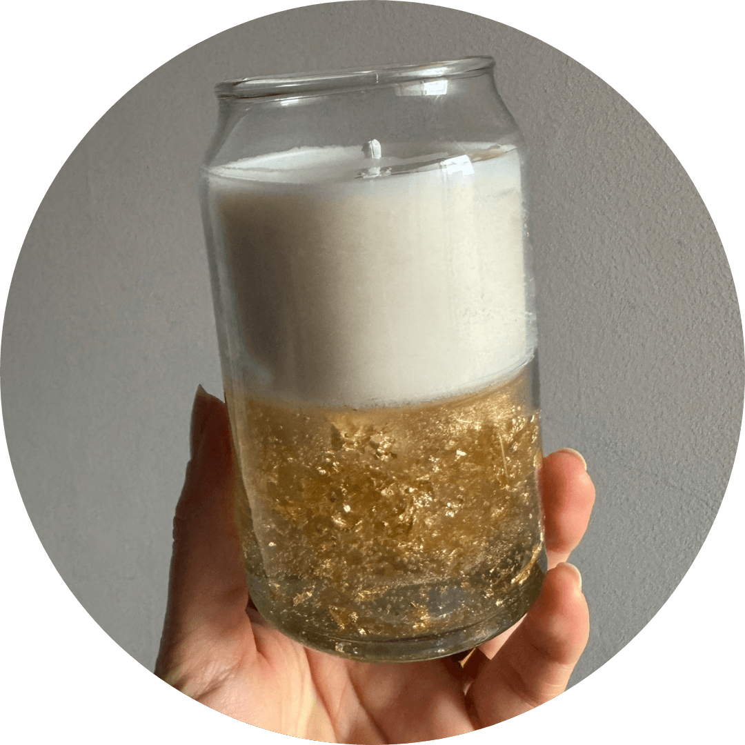 Harás más de 20 tipos de velas con distintas técnicas, estilos y acabados: velas en envase, molde, masajes, geodas, chantilly, wax melts y más.